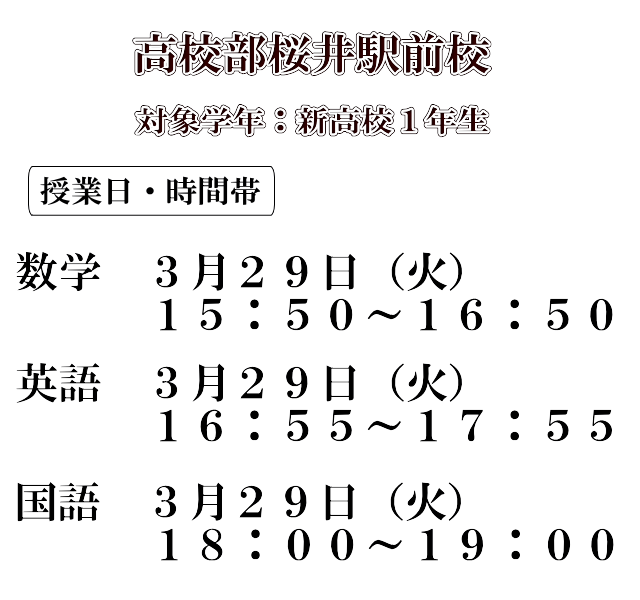 ※高校部桜井駅前校は桜井高校生向けの授業となっております。