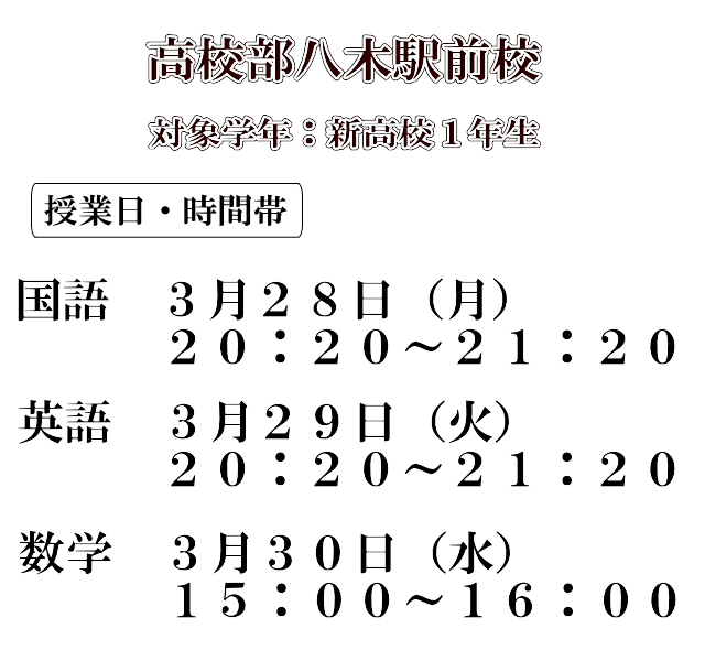 プレ授業とは新高校1年生対象の体験授業となります。